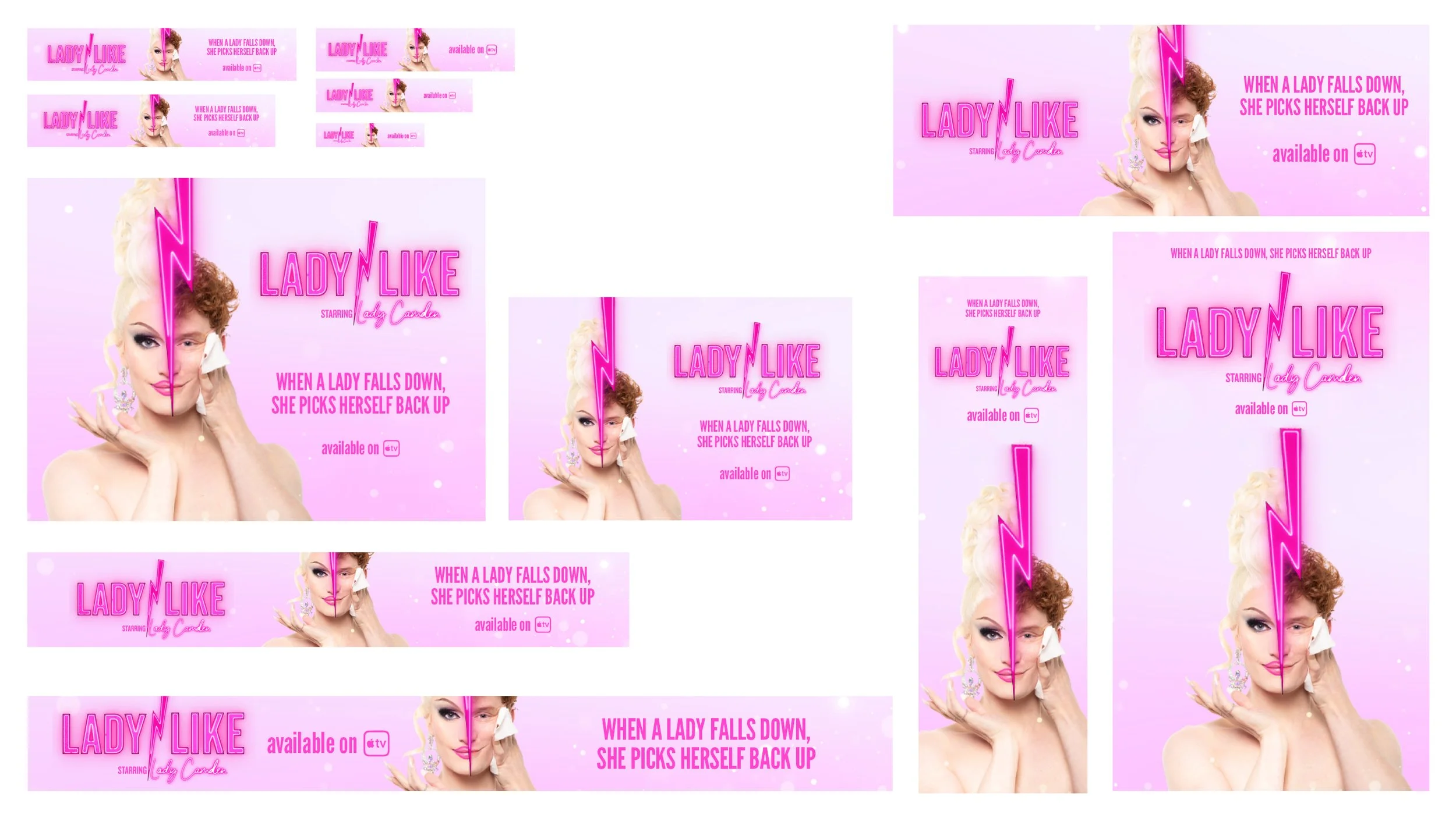 Lady like is a documentary on drag queen lady camden from ru paul’s drag race. for this project i worked on adapting the marketing for this home entertainment across a variety of digital platforms with banners and for social.